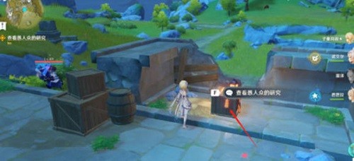 2:然后我们要前往碎雪标注的地点,这个地点会有愚人众,玩家不用打他,直接飞到楼顶查看研究;