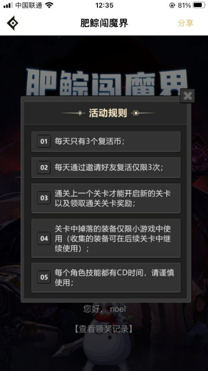 ②复活机会,每天有3个复活币,以及通过邀请好友获得额外的复活机会。