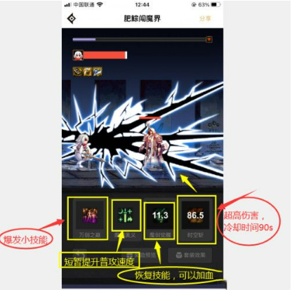 注意及时加血(魔剑觉醒),并合理使用冷却时间较长的高伤技能“时空斩”。