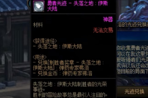 勇者光迹可以来兑换致胜者奖章,而致胜者奖章可以用来兑换伊斯大陆的高级装备和伊斯大陆的附魔宝珠,也可以拿去换取金币,每个勇者光迹可以兑换20万金币,兑换位置就在npc弗洛处。
