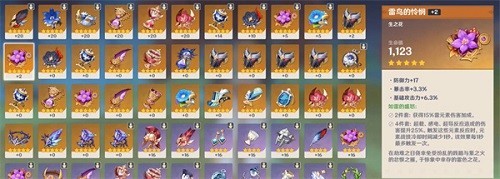 1:首先这个圣遗物是比较契合妮露的,这个套装的效果为,两件套元素精通提高八十点;