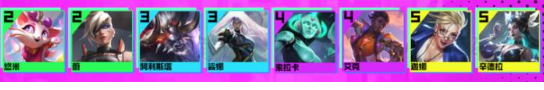 1、阵容构成:悠米、蔚、阿利斯塔、娑娜、索拉卡、艾克、迦娜、辛德拉、蕾欧娜