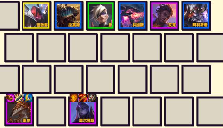 1、阵容构成:加里奥+泰隆+阿利斯塔+希维尔+艾克+佛耶戈+蕾欧娜+迦娜+厄斐琉斯