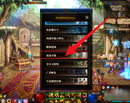 1.在游戏中,进入赛丽亚【传送阵】,传送到【装备升级】区域,如图所示。