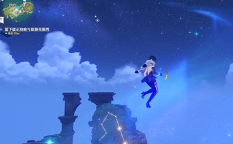 (1)接星光凝核三的步骤,快到顶部的星空桥图中,可以看到下面的浮空废墟上有1个星核。
