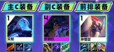 阵容组成:孙悟空、艾希、希维尔、潘森、贾克斯、盖伦、莎弥拉、终极伊泽瑞尔