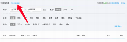 某些支付宝用户接下来可能会跳转到标准版账单界面,需要按下图指示切换成 “高级版” 模式