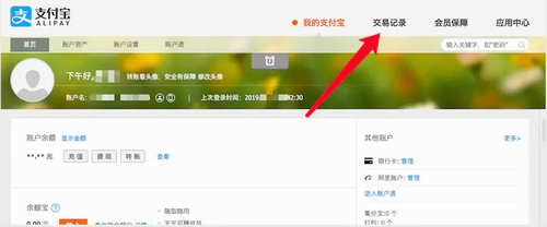 登录后网站会自动跳转到个人中心,点击“交易记录”