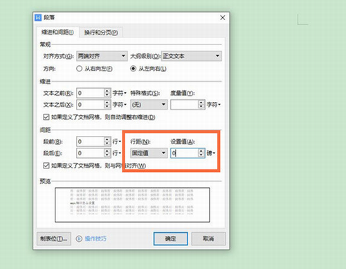 3、单击右键选择段落,将行距选为固定值,数值为0。