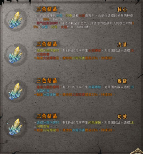 核心:当你造成任意冰霜、闪电或者火焰伤害时,会使你造成的另外两种伤害提高99%,持续3秒。