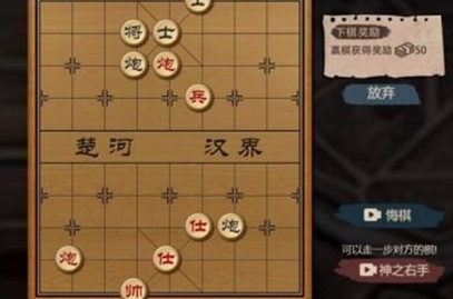 2、获胜以后可以获得50元,这个残局对弈是随机出现的对局,都挺简单的,稍微对象棋有一定了解的话都可以解,实在不会解的话可以看广告使用神之右手。