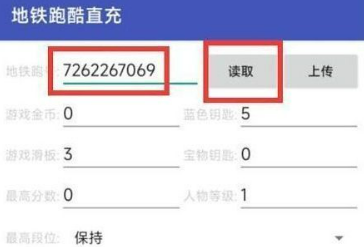 3、紧接着将地铁跑酷首充ID填写进下载好的地铁跑酷首充器中,然后点击读取。