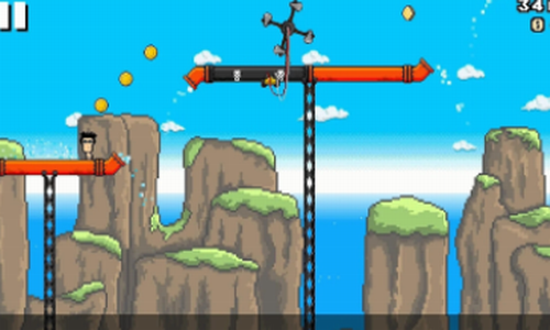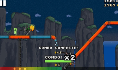 游戏中,我们的玩家将操控一个疯癫的男人,在架空的水管之上蹦跑。男人飘逸的长发沾水之后将带起一道彩虹,真是有趣极了。你准备好了吗?开始你的冒险吧!