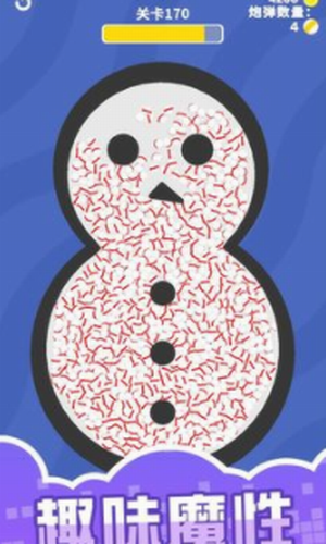 1、游戏玩起来轻松简单,操作上没有任何的难度,拽控制炮弹的发射就行了
