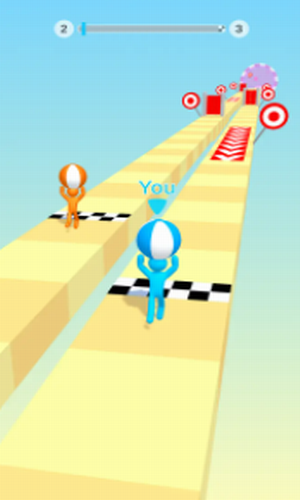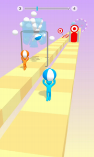 这是一个杂技题材的跑酷游戏,也是现在流行的橡皮人风格,每一局比赛都是两个人进行,拿着大球可以砸对手,