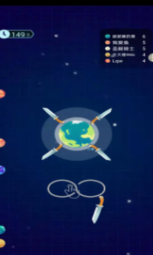 2、在游戏中操控你的角色,不断吸收飞刀展开挑战。