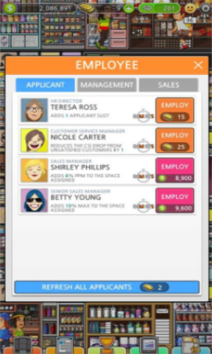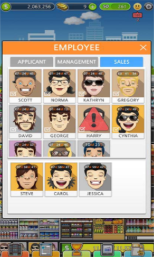 1.游戏中玩家可以雇佣各种员工哦,玩家可以不断地雇佣其他人才,让玩家拓展自己的超市规模