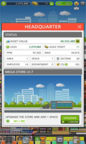 1.游戏内容丰富,玩家可以新建部门,并且不断的升级,最大化的获得收入,在正确的时间和位置雇佣合适的员工帮助你