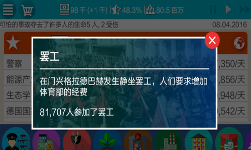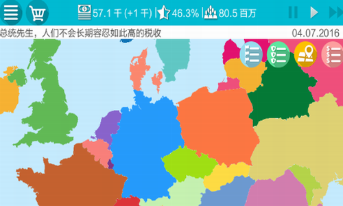 创造一个繁荣的国家, 制定主题思想和国家发展战略,提高人民生活质量。德国模拟器2破解版是一款非常考验玩家策略性的建设手游,该游戏以发展中的德国作为背景,玩家在游戏中需要合理的经营自己的国家,通过种种手段来促进经济的发展哦,这是一款好玩的模拟经营类手机游戏,在游戏中,玩家将扮演一国总统,以创建一个国家的繁荣经济开始游戏,玩家当上了德国的总统,需要颁布各项法令,指导国家发展方向,甚至对外扩张等等,您的每一个决定都会影响到德国的发展进程,德国模拟器2是一款非常有代入感的手机游戏,喜欢此款德国模拟器2的朋友欢迎下载畅玩。