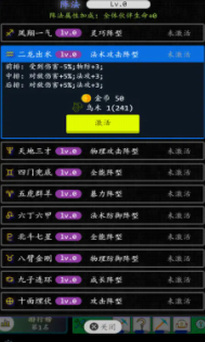 3、可以去尝试各种的阵法,在竞技场中去战斗,逐渐的升级自己的等级;