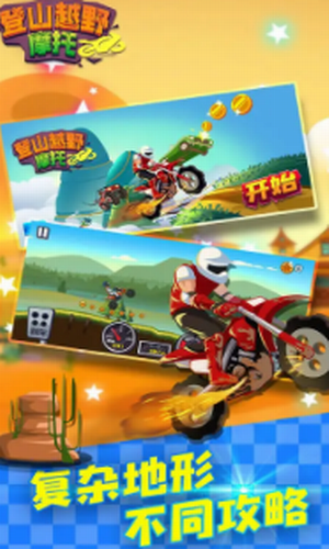 2、玩家需要驾驶一辆摩托车进行登山挑战,登山路途中会遇到各种障碍物;