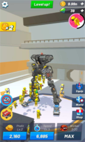1.提高每分钟的金币收益,通过增加工作的机器人来改变