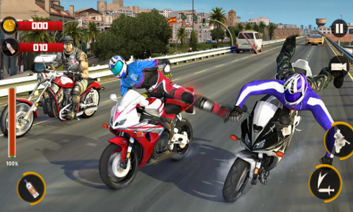 左边出拳,右边出脚,暴力飞车之王必定是你!荒野摩托车狂飙汉化版是一款有趣的赛车竞速游戏,玩家在游戏里面驾驶摩托车进行各种的比赛,游戏里面玩家还可以拿起武器来攻击旁边的人,让你能够顺利的超过它们,并完成自己的驾驶挑战,玩家需要动用好自己的加速效果开启新的故事,进行新的传奇故事,进行挑战,有兴趣的朋友记得下载荒野摩托车狂飙。