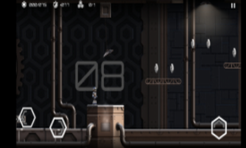 2,点击左下角的按钮,可以控制机器人四处移动,点击右下角的按钮可以控制机器人跳跃,灵活的移动,更好闯关。