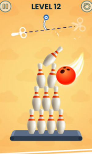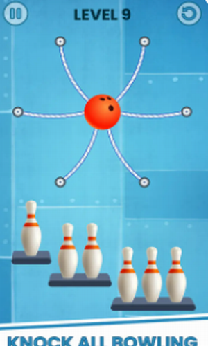 切开绳子敲打别针!你能准确击中所有的球吗?绳索保龄球完整版是一款类似割绳子的趣味保龄球游戏,说到保龄球,你一定会想到那些经典的保龄球玩法,不过现在你将体验到一种完全与你印象中不一样的趣味玩法,将悬挂在空中的保龄球身上的绳索剪断,在游戏中,玩家需要使用手指滑动屏幕,让绳索上的小球去撞击球瓶,操作简单轻松,感兴趣的朋友快来下载体验吧!