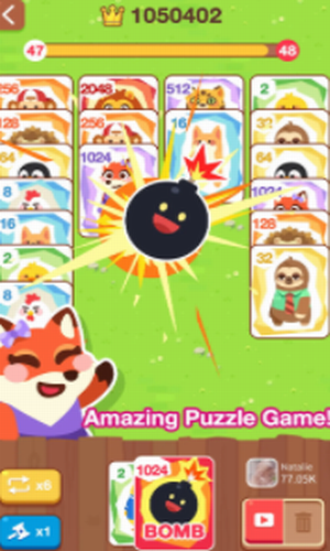1、动物2048中玩家需要不断合并相同的动物。