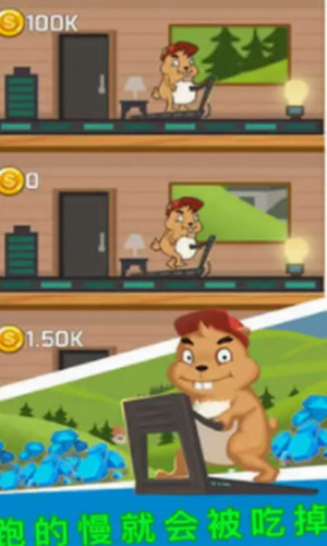 2、可爱的Q崩的竹鼠如果跑的慢还会被吃掉哦,不断奔跑努力赚钱,趣味玩法很简单哦;