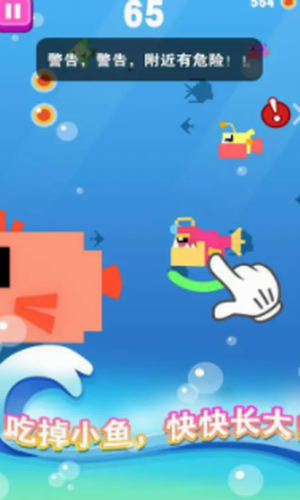 2、玩家只要用手指操控小鱼游行的方向,在深海旅途中避开危险,逐渐成长。