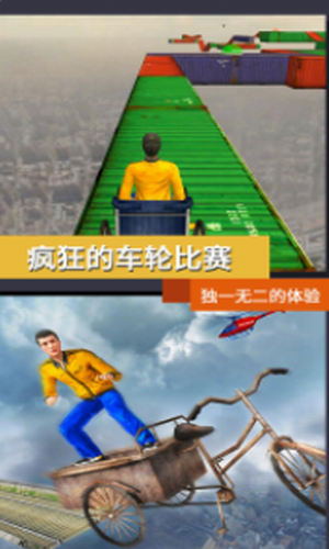 垂直往下的坡度打造,不断闪躲设置的障碍物。疯狂的车轮比赛中文版是一款汉化后的赛车手游。这款游戏的主要赛车设备就是自行车。比赛过程中会考验平衡力、反应力等等。玩家要具备超高的自行车骑行技术才可以顺利比赛!玩家通过操控坡道上的赛车不断前景,厕所,垃圾箱,沙发,床,椅子,浴缸,担架,自行车等可以成为你的驾驶工具,沿途还有超多美丽的风景,通关后还支持解锁超多金币钻石奖励,感兴趣的朋友欢迎下载体验。