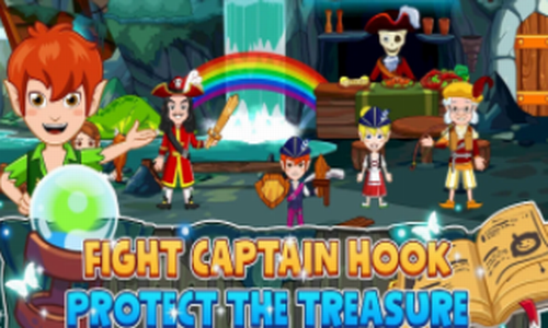 1、童话画风,多角色,在这里玩家可以见到各种各样的新角色,包括主角彼得潘,小叮当,船长等一系列有趣的人物等待着玩家你;