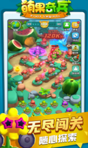 《萌果奇兵》是一款画面清新的植物塔防手游,游戏加入了众多的植物英雄,玩家可以解锁爆裂西瓜、刺头仙人掌、热火朝天椒等众多不同的水果来组成自己的防御阵型,不同的水果攻击方式是不同的,合理的布置自己的阵地,抵御众多敌人的攻击。