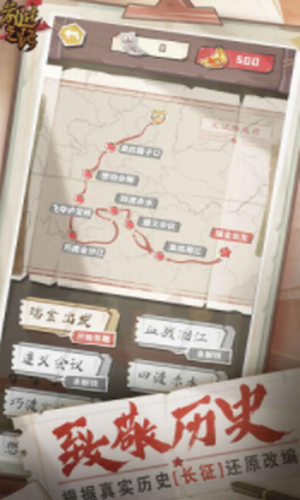 长征中的千辛万险想必不用多说,玩家将会以文字和画面的方式在游戏中重现出各个场景。期间会让玩家经历各种选择,每一次选择都会为之后的故事带来巨大的影响,需要玩家谨慎对待。