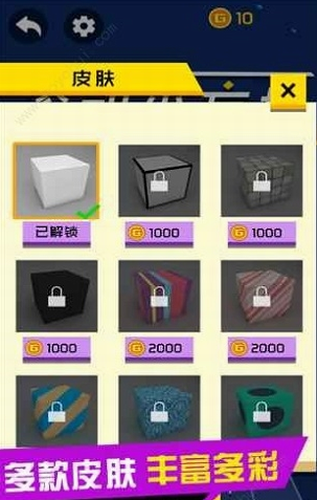 3、你喜欢的小方块可以解锁皮肤哦,多种有趣的皮肤玩家可以用游戏里的金币购买。