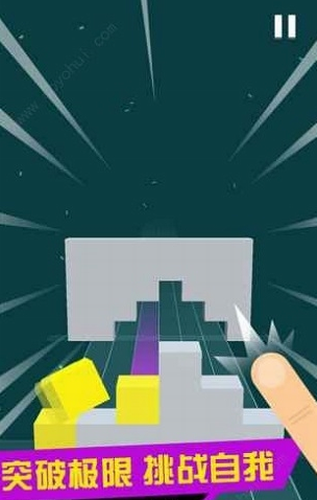 3、挑战各种高难度的方块组合,穿越所有的障碍,努力到达更远的方向,小心别糊墙上了。