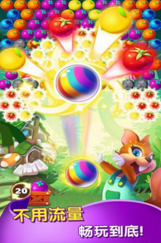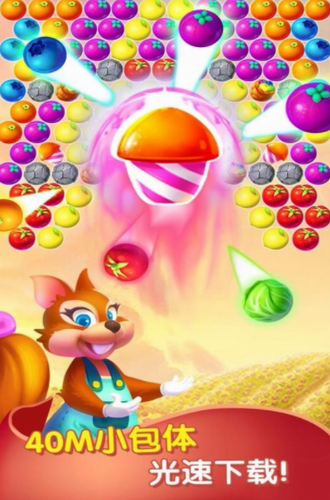 泡泡农场大作战最新版是一款经典休闲类手游,游戏为玩家带来不同的过关模式以及丰富的关卡,可供玩家消除的各种元素是各种蔬菜水果,三个或以上水果连到一起时,就会消除掉。会有无数个泡泡龙等着你来消灭,你需要消灭它们来拯救被困住的小鸟,收集各种有用的道具,可以更加快速的来攻克难关,你有信心在泡泡农场大作战游戏中协助松鼠完成这种挑战吗?让我们一起战胜困难,踏入这神秘而又充满艰难的探险之路吧!
