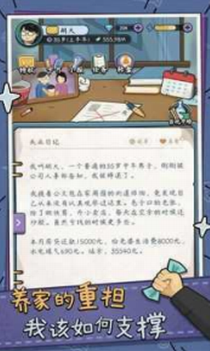 1.除了支付自己的日常开支外,玩家还将受到家人的影响,并应对在家中遇到的生活压力。