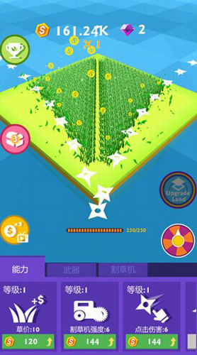 2、选购不一样的割草专用工具,还能够开展持续的升級,大大的提高游戏玩家的割草高效率。