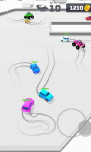 2、简单的操作技巧:滑动屏幕控制小车在竞技场中移动,极速漂移掌握各种操作的细节。