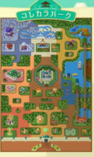 【主区域】・旋转木马《配合地板的旋转,座位马上下游的游乐设施!别名叫做回转木马。]・爆米花店“请尝尝刚出锅的爆米花!味道有盐、奶糖等。]・滴落塔《从10米高的地方一下子急速下降!是能享受浮游感,惊险满分的尖叫机器。]・气球店“这是只限于科雷卡拉公园的原创气球。气球里面有星型的金银!]