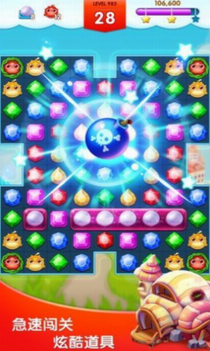 钻石星语是一款趣味十足的消除游戏,采用了最经典的三消基本原理。另外,在这里加入了一些新的元素,你会发现被消除的物品变成了宝石,非常炫酷和华丽,有很多技巧可以掌握,让你快速获得积分并开启新的关卡。
