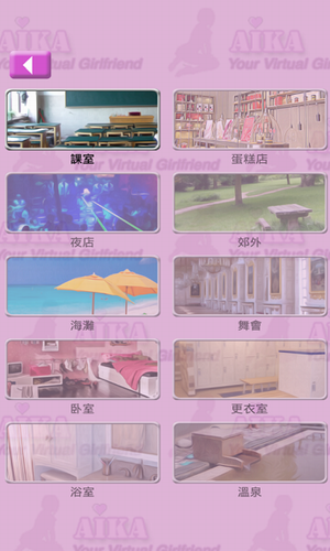 不同刺激地点:课室、咖啡店、夜店、郊外、海滩、宴会厅、女友睡房、更衣室、浴室、温泉。