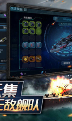 3、解锁研究丰富的武器装备,自由搭配到舰船上,组建最强海上编队。