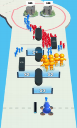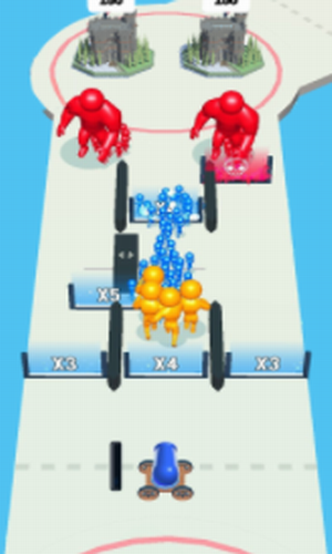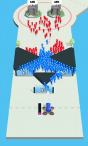 1、玩家在游戏中控制发射火柴人的火炮,在各种倍增门槛的助力下,抵挡敌人的侵略,赢取关卡的胜利;