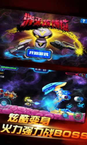 2.采用虚拟按键操作,自动瞄准怪物,玩家可通过简单的屏幕点触即可完成跳跃,射击等操作进行躲避、击杀怪物。