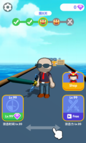 3、只有长按屏幕才可以自动格挡和战斗,不断的前进来摧毁一切阻挡的障碍。
