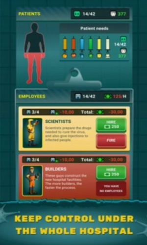 为医护人员提供高质量的设备,扩大娱乐场所并装备指挥所。僵尸医院大亨破解版是一款以僵尸感染为主题设计的模拟经营类游戏,玩家们将会在这个僵尸末日世界中经营一家自己的医院,医院的主要任务就是治疗那些被感染的人类,这样才能够拯救这个末日世界。玩家是一所医院的管理者需要及时救助这些患者。你需要招聘大量的专业人员进行病毒研究,还要招募大量的武装人员放置这些人人变异后进行无差别的攻击。游戏画面精彩,内容丰富非常值得一玩。
